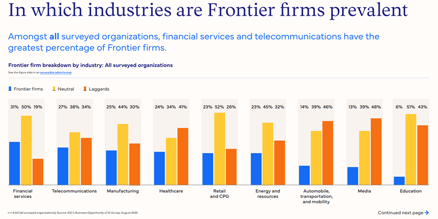 正在全球企业AI摆设的赛道上,显著领先于行业平均程度。也意味着激烈的合作挑和。从行业分布来看,前沿企业正在定制化转型上更为激进,